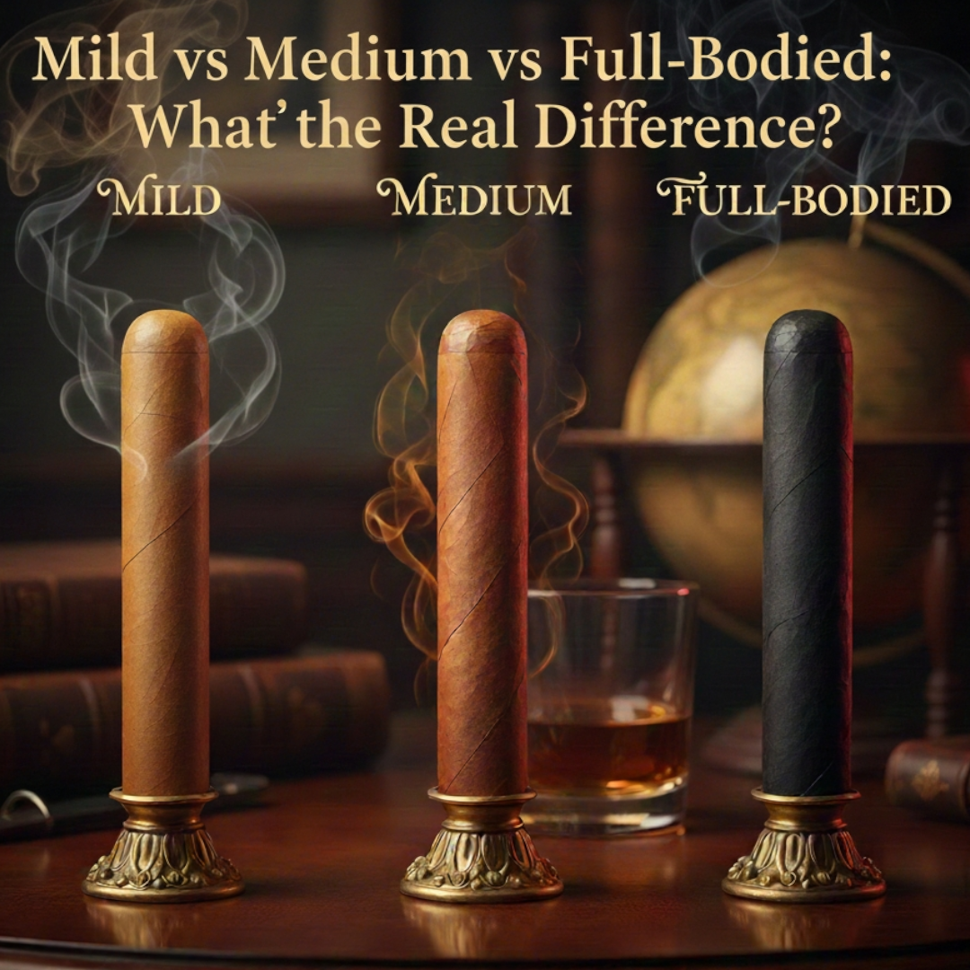 Cigars work the same way. A full-bodied cigar makes thick, heavy smoke that fills your whole mouth. A mild-bodied cigar makes lighter smoke that feels more delicate. One isn’t better than the other—they’re just different.